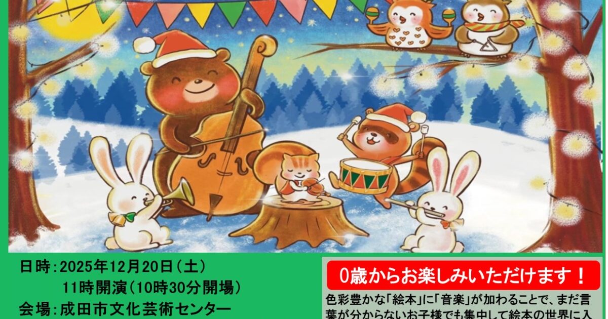 <blockquote class="wp-embedded-content" data-secret="2YFrkiB9GP"><a href="https://nijikoma.com/event/%e9%9f%b3%e6%a5%bd%e7%b5%b5%e6%9c%ac%e3%82%af%e3%83%aa%e3%82%b9%e3%83%9e%e3%82%b9%e3%82%b3%e3%83%b3%e3%82%b5%e3%83%bc%e3%83%88/">音楽絵本クリスマスコンサート</a></blockquote><iframe sandbox="allow-scripts" security="restricted" src="https://nijikoma.com/event/%e9%9f%b3%e6%a5%bd%e7%b5%b5%e6%9c%ac%e3%82%af%e3%83%aa%e3%82%b9%e3%83%9e%e3%82%b9%e3%82%b3%e3%83%b3%e3%82%b5%e3%83%bc%e3%83%88/embed/#?secret=2YFrkiB9GP" width="600" height="400" title="“音楽絵本クリスマスコンサート” — " data-secret="2YFrkiB9GP" frameborder="0" marginwidth="0" marginheight="0" scrolling="no" class="wp-embedded-content"></iframe><script> /*! This file is auto-generated */ !function(d,l){"use strict";l.querySelector&&d.addEventListener&&"undefined"!=typeof URL&&(d.wp=d.wp||{},d.wp.receiveEmbedMessage||(d.wp.receiveEmbedMessage=function(e){var t=e.data;if((t||t.secret||t.message||t.value)&&!/[^a-zA-Z0-9]/.test(t.secret)){for(var s,r,n,a=l.querySelectorAll('iframe[data-secret="'+t.secret+'"]'),o=l.querySelectorAll('blockquote[data-secret="'+t.secret+'"]'),c=new RegExp("^https?:$","i"),i=0;i<o.length;i++)o[i].style.display="none";for(i=0;i<a.length;i++)s=a[i],e.source===s.contentWindow&&(s.removeAttribute("style"),"height"===t.message?(1e3<(r=parseInt(t.value,10))?r=1e3:~~r<200&&(r=200),s.height=r):"link"===t.message&&(r=new URL(s.getAttribute("src")),n=new URL(t.value),c.test(n.protocol))&&n.host===r.host&&l.activeElement===s&&(d.top.location.href=t.value))}},d.addEventListener("message",d.wp.receiveEmbedMessage,!1),l.addEventListener("DOMContentLoaded",function(){for(var e,t,s=l.querySelectorAll("iframe.wp-embedded-content"),r=0;r<s.length;r++)(t=(e=s[r]).getAttribute("data-secret"))||(t=Math.random().toString(36).substring(2,12),e.src+="#?secret="+t,e.setAttribute("data-secret",t)),e.contentWindow.postMessage({message:"ready",secret:t},"*")},!1)))}(window,document); //# sourceURL=https://nijikoma.com/wp-includes/js/wp-embed.min.js </script>