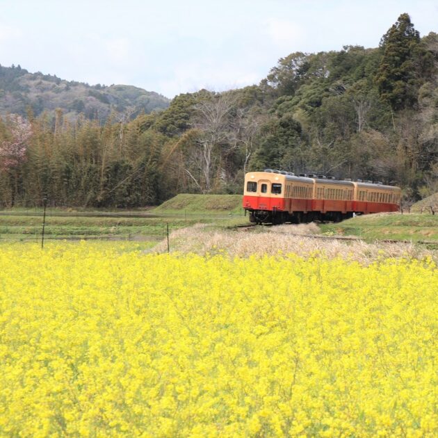 春の菜の花や桜、秋の紅葉と車両の組み合わせは絶好の撮影ポイント。終点でいすみ鉄道とつながり、房総横断の旅が楽しめます。
