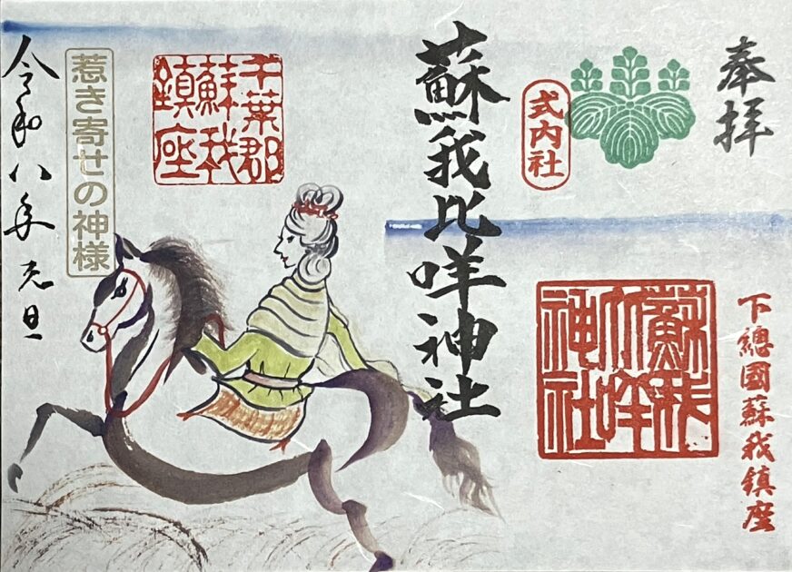 蘇我比咩神社は、蘇我比咩さまをあしらった愛らしい御朱印も人気。