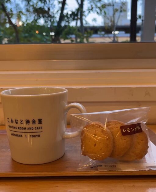 コーヒーや焼き菓子で温まりつつ、車内でつまめるおやつや小湊グッズをチェック。