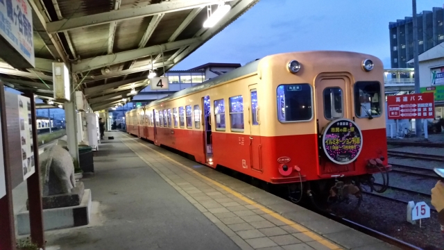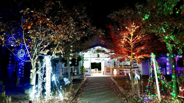 小湊鐵道の沿線駅では、晩秋の夕暮れに合わせて駅舎イルミネーションが点灯。