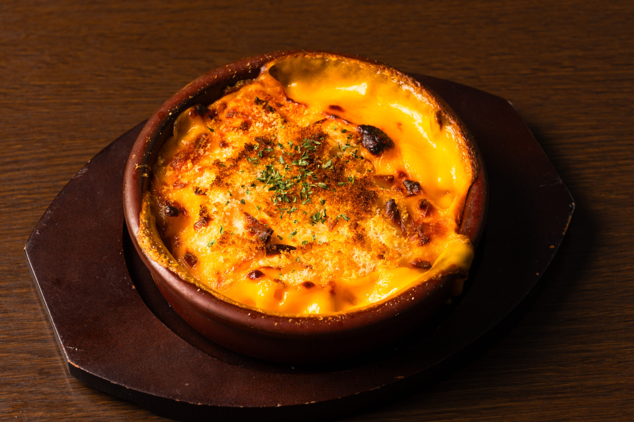 濃厚なチーズとマカロニを香ばしく焼き上げた「マッケンチーズグラタン」は、あつあつとろ~りで心まで満たされる一皿。