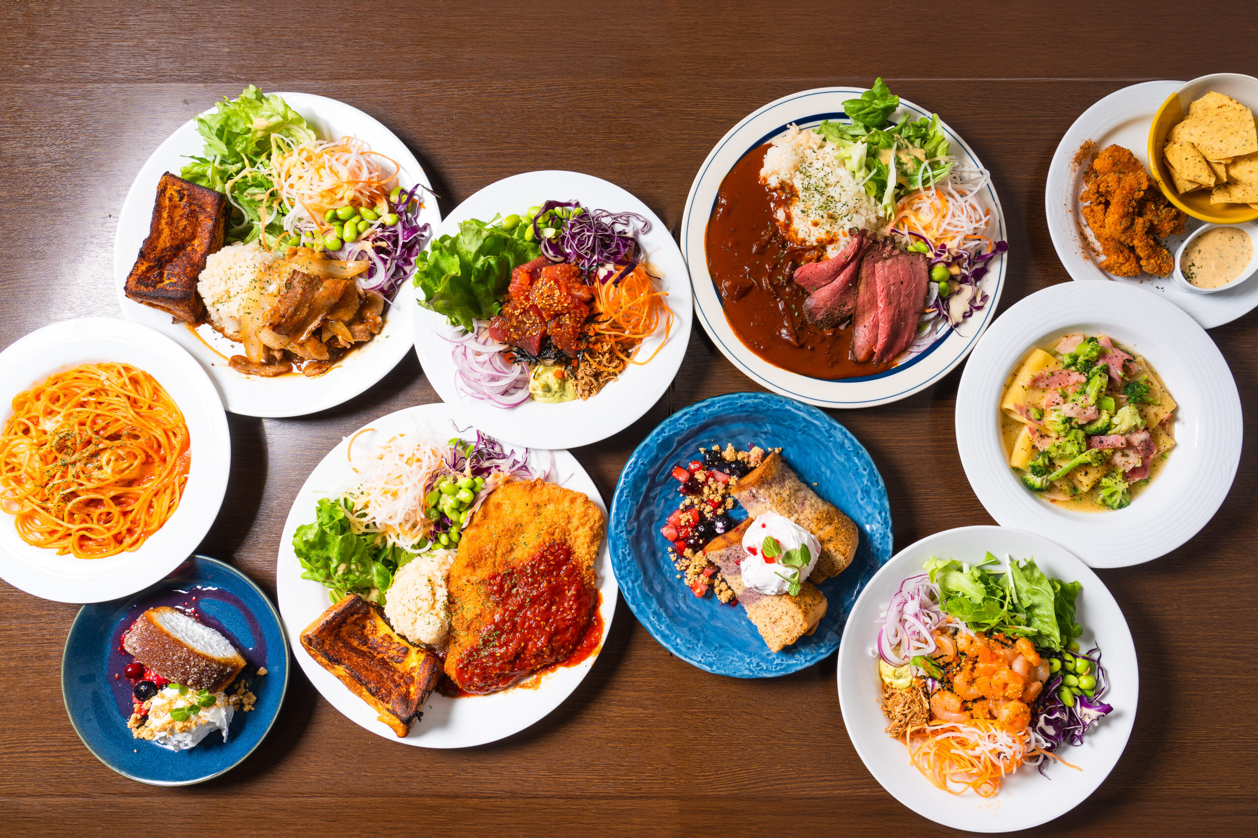 ボリューム満点のプレート料理から豊富なサイドメニューやスイーツまで揃い、どんなシーンにも寄り添ってくれる一軒です。