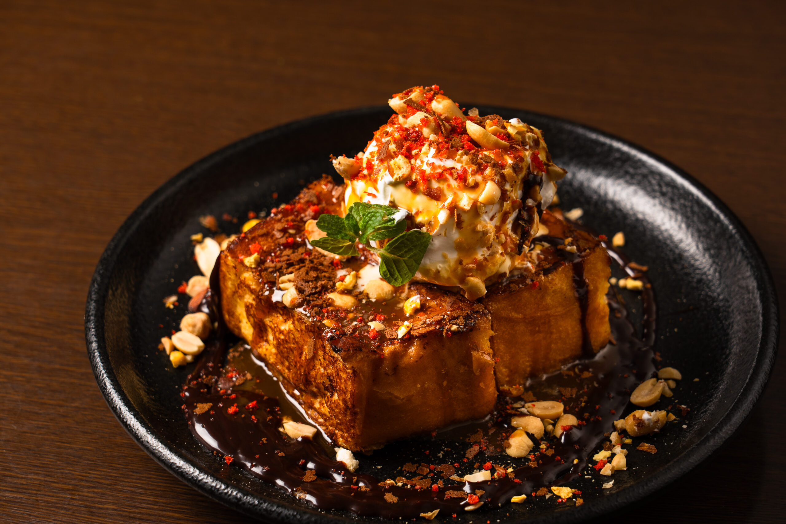 とろけるような食感と香ばしいキャラメル、ナッツの食感がアクセントになった「路地裏フレンチトースト キャラメルナッツショコラ」は、濃厚なのにぺろりと食べられる贅沢な一皿。