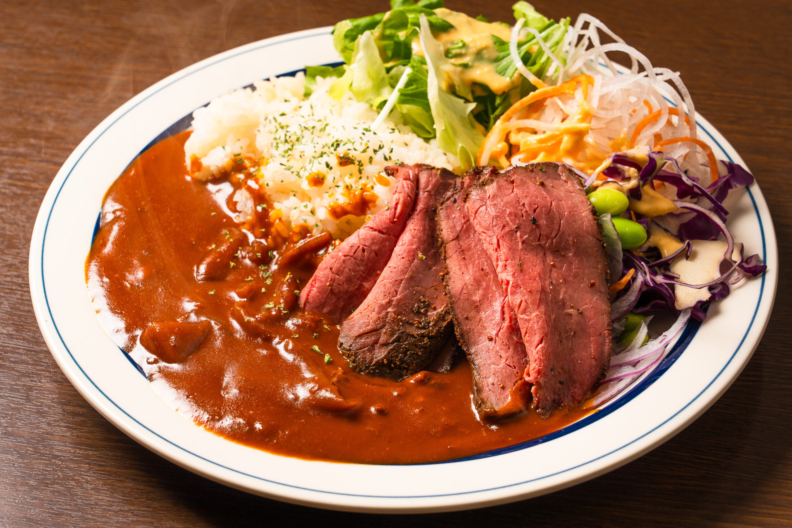 なかでも特に人気なのが、こちらの「ローストビーフハヤシライス」です。やわらかく仕上げたローストビーフを贅沢に盛り付け、濃厚でコク深い特製ハヤシソースと合わせたひと皿は、しっかり食べたい方にも満足感たっぷり。カフェごはんらしいおしゃれさと、食欲を満たす豪快さを両立した一品です。