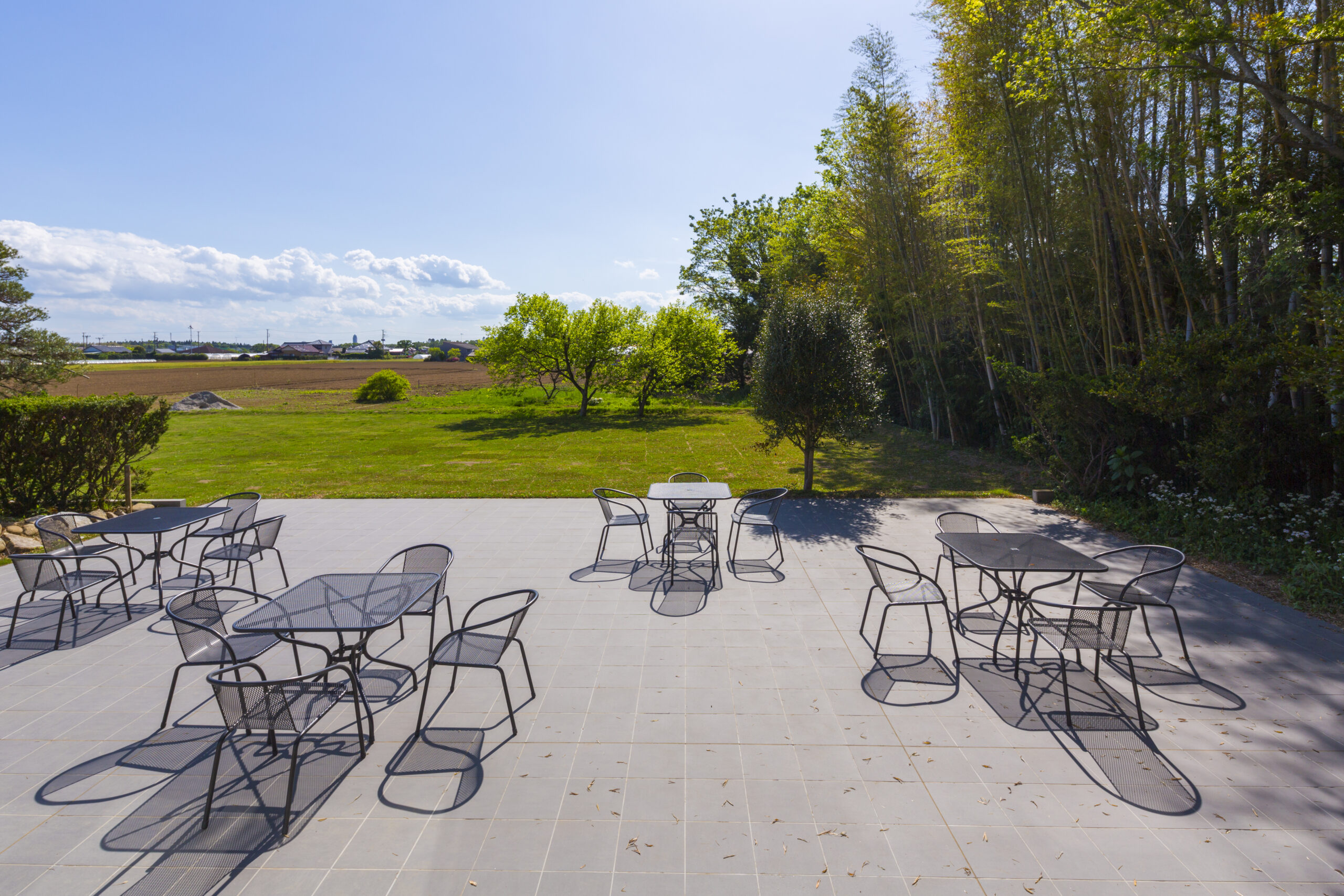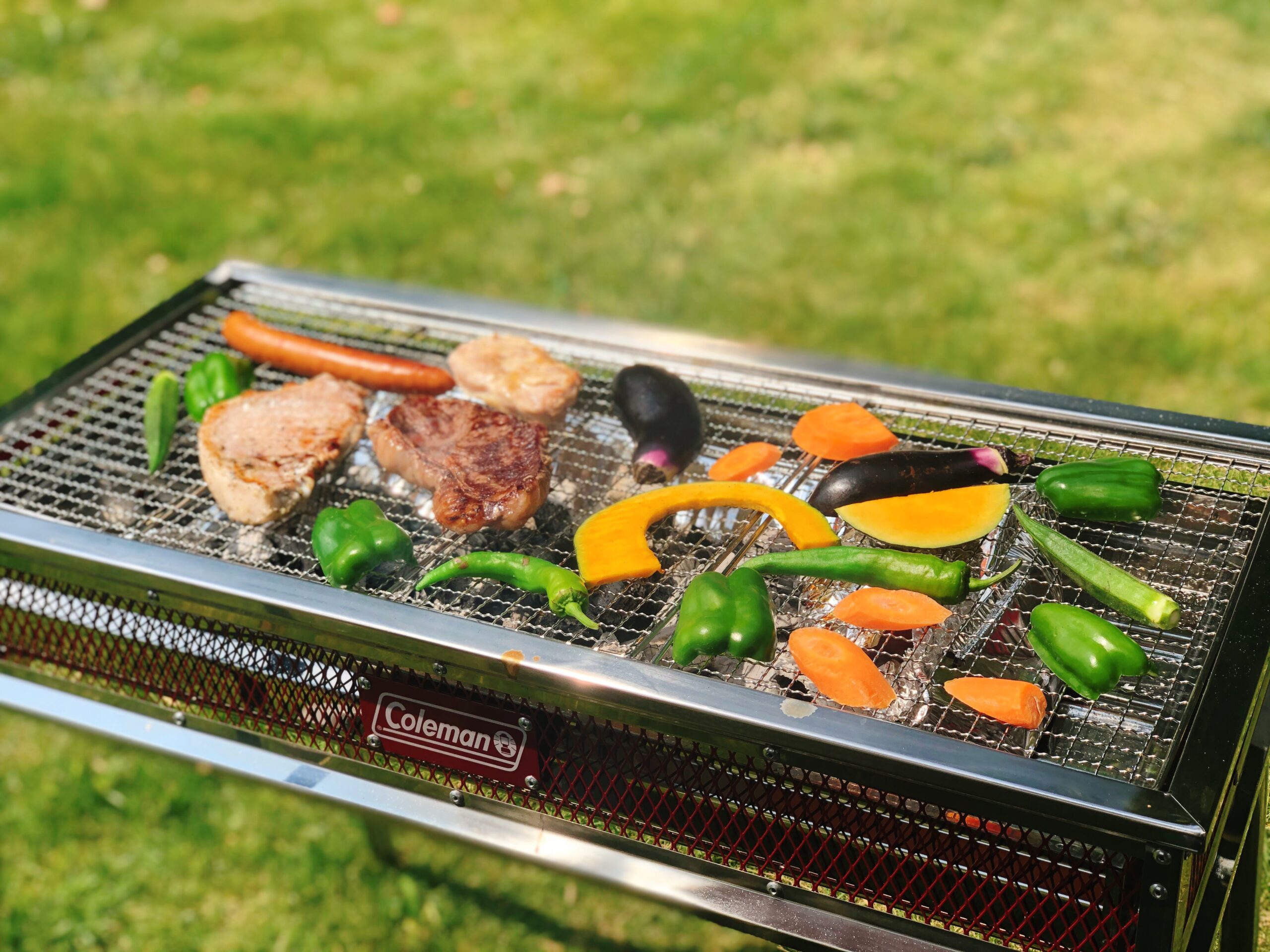 レストラン芝生エリアでのBBQは、セッティング済みのBBQ用品一式と食材がセット。
