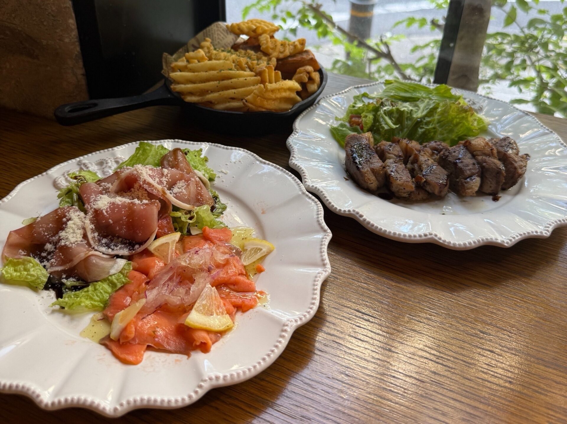 選べるメインにサラダが付いて、ちょっと贅沢なランチタイムを気軽に楽しめます。