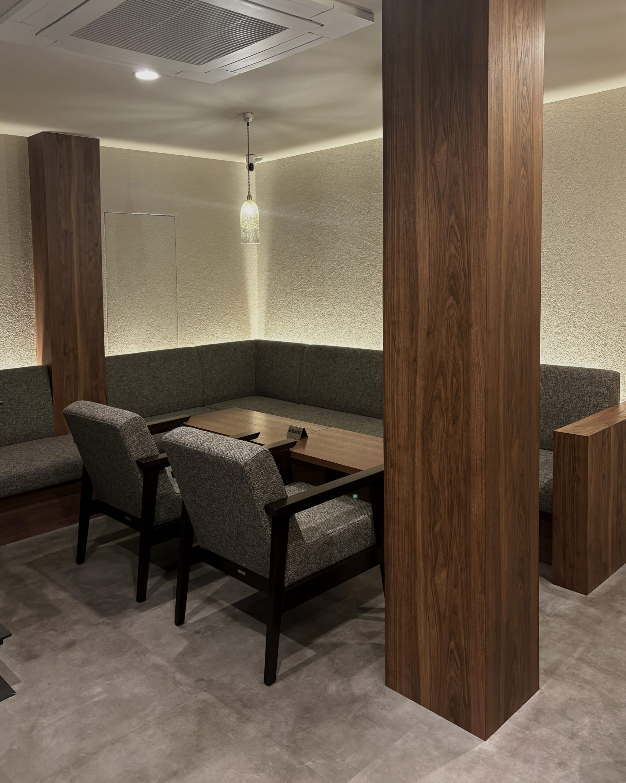 2人~4人向けのハイカウンターや、4人~6人で寛げるソファー席もあるので、歓送迎会やちょっとした集まりなどにもピッタリです。
