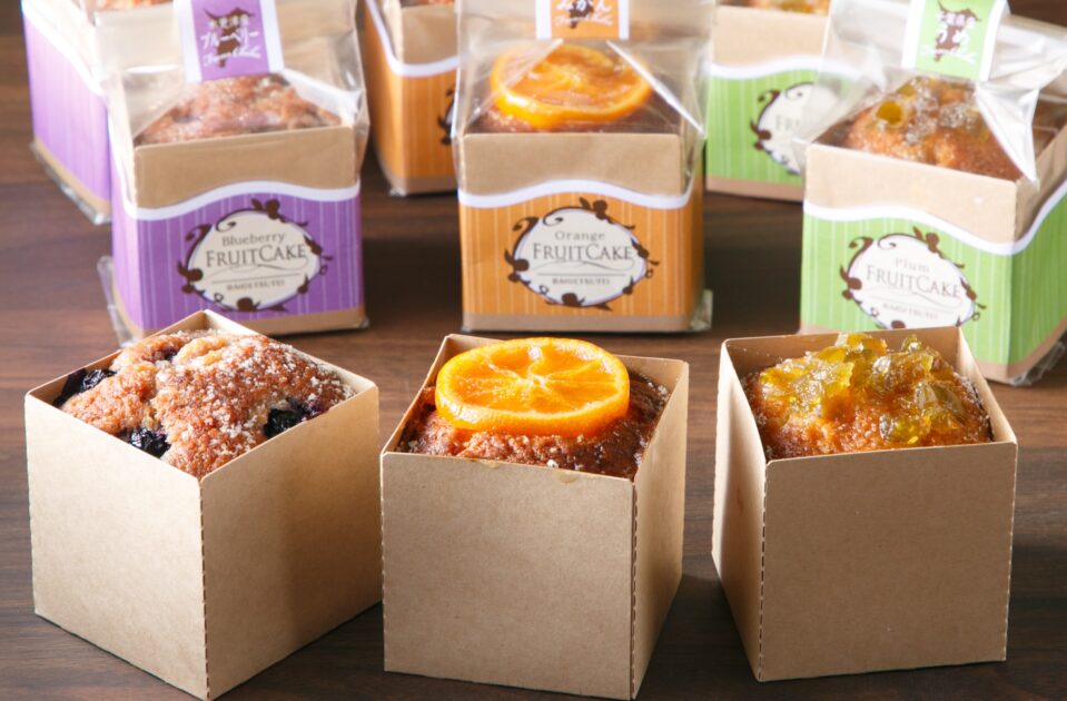 木更津産ブルーベリー、千倉産みかん、木更津産青梅をたっぷり使用しており、千葉県産の果物をギュッと詰め込んだコンパクトで可愛らしいフルーツケーキです。