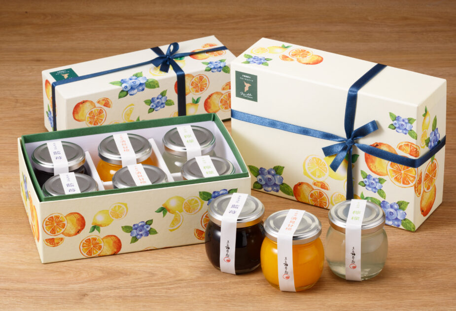 初夏から夏にかけて人気なのが、千葉の素材を活かした「千葉旬菓ゼリー」。木更津産ブルーベリー、千倉産清見オレンジ、千倉産レモンの3種類が揃い、見た目にも鮮やかで、お子様から大人まで喜ばれるギフトです。