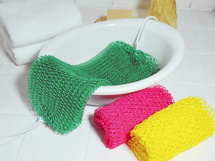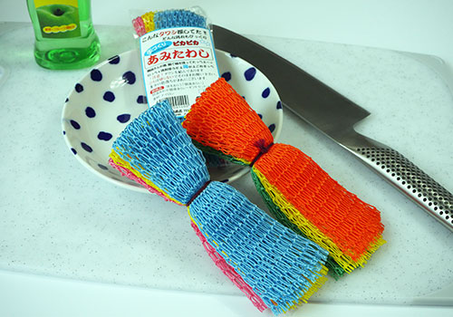 もともと漁網の製造・販売を手がけてきた同社が、その専門技術と知見を活かし、ボディタオルや食器洗いたわしも手がけています。