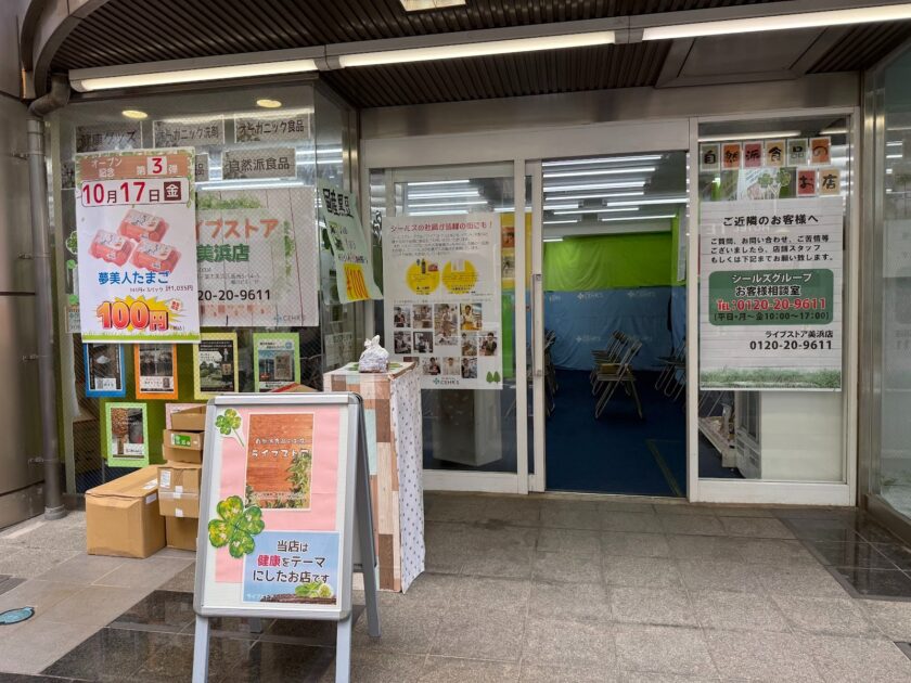 10/15に稲毛海岸駅近くに3ヶ月限定でオープンした自然食品やサプリメントの販売を行う「ライブストア」がオープン。
