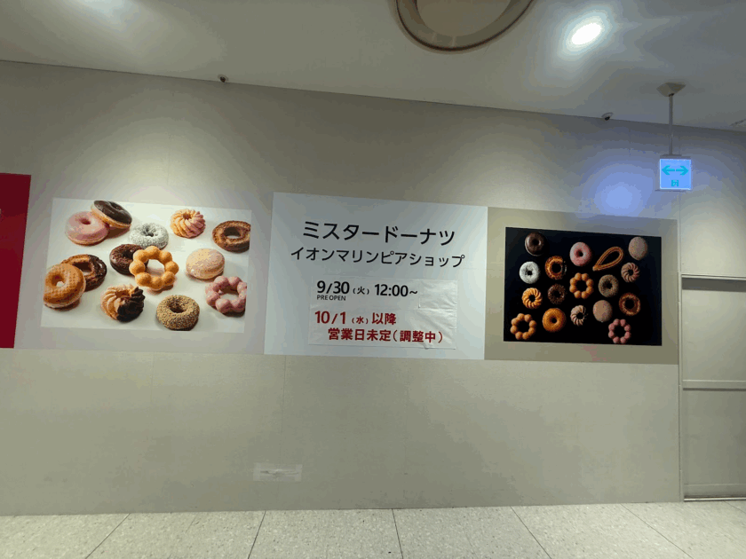 稲毛海岸駅前の「イオンマリンピア本館1階」に、ミスタードーナツが新しくオープンします。