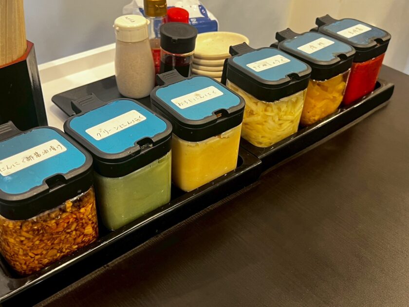 また各テーブルは6種類のスパイスが置かれ味変もできます。