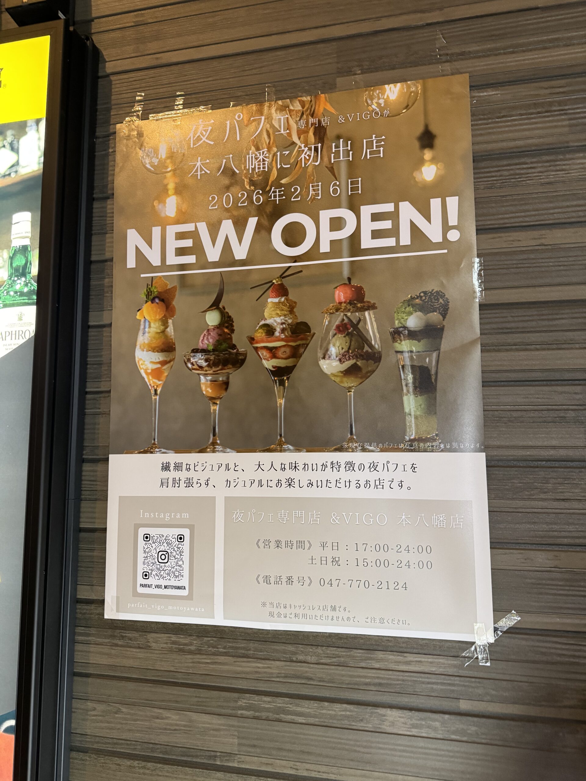 本八幡の八幡一番街に新しく、夜パフェ専門店 &VIGO 本八幡店が、2026年2月6日にオープンします。