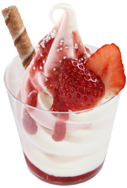 濃厚な味わいで人気のソフトクリームに、オリジナルのいちご果肉ソースをトッピングした「プチぱふぇいちごミルク」もこの季節限定の注目メニュー!