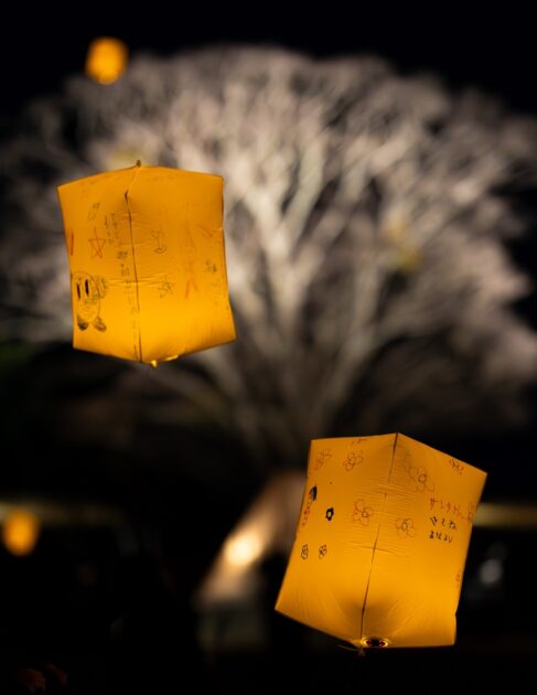 光を集めたような実をつける「特別な木」の下で、ランタンを夜空へ……!!
