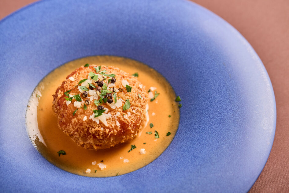 ライブキッチンディナー限定メニューは、クラブ&シュリンプケーキビスク風ソース。