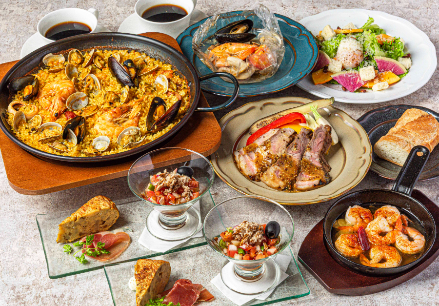 看板料理の「パエリア」を中心に、家族でもシェアしやすいメニュー構成となっており、お子様向けのセットメニューや、カフェタイムに楽しめるデザートまでも展開。