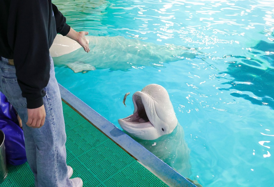 おでこが可愛いベルーガへのタッチや給餌体験、シャチのナイトパフォーマンス見学などのメニューが盛りだくさん。