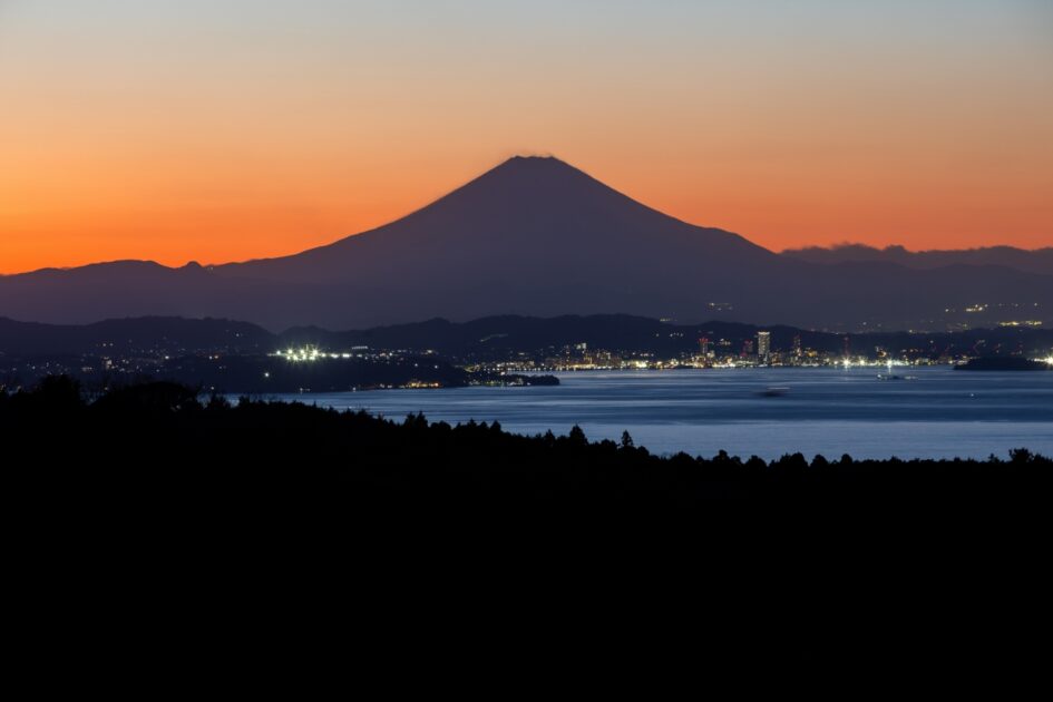 ・日没後〜40分間の「マジックアワー」では空のグラデーションが美しい景色