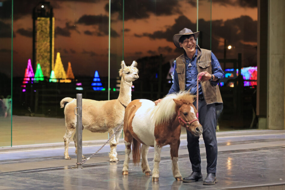 ・牧場の動物たちが登場し、特徴の紹介や特技の披露を行う「ナイトファームショー」(上の画像)
