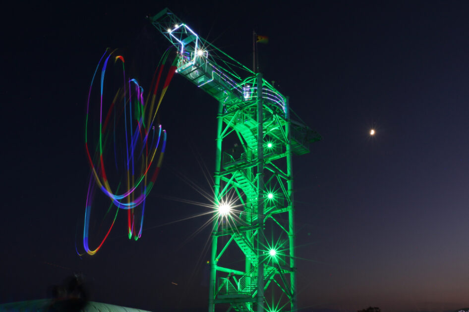 タワーの高さ21m。標高を合わせるとなんとッ!! 321mの高さからイルミネーションへ飛び込む特別な体験ができるんです。日中の「バンジージャンプ」とは一味違った、光輝く夜のバンジージャンプでスリリングな体験を!