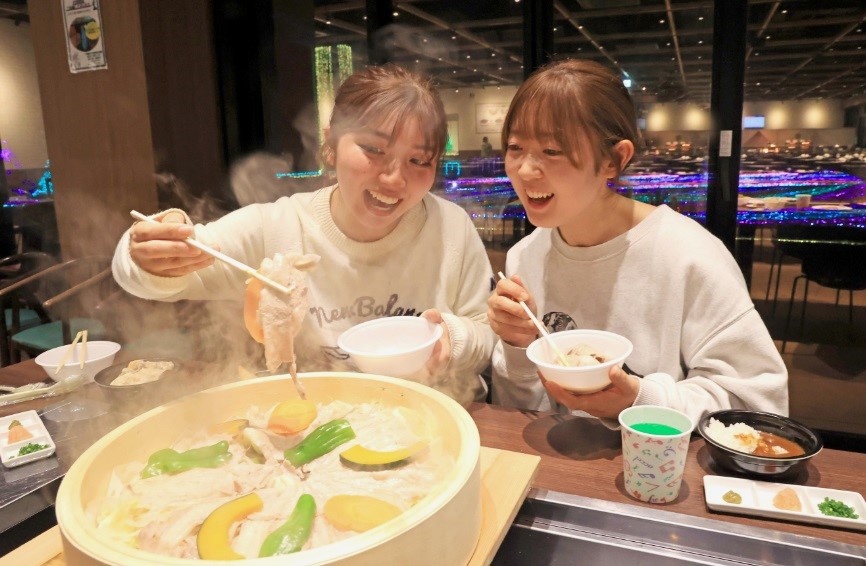【⑤イルミ限定グルメ「ジンギスカン食べ放題or名水もち豚せいろ蒸し食べ放題」】(上の画像)
